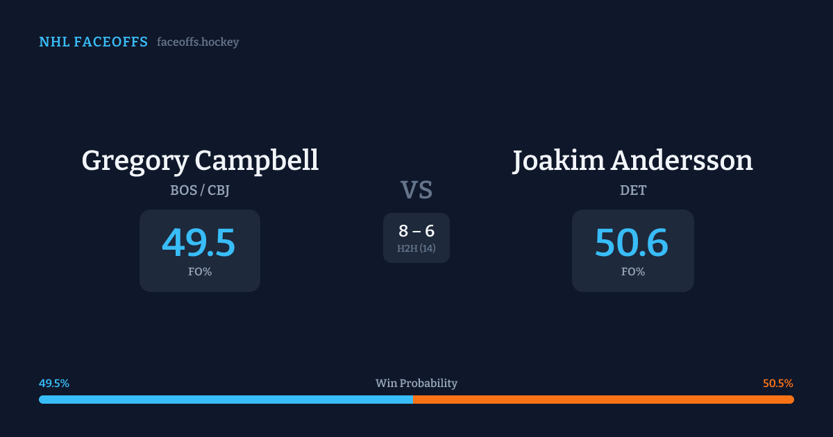 Gregory Campbell vs Joakim Andersson — Faceoff Head-to-Head