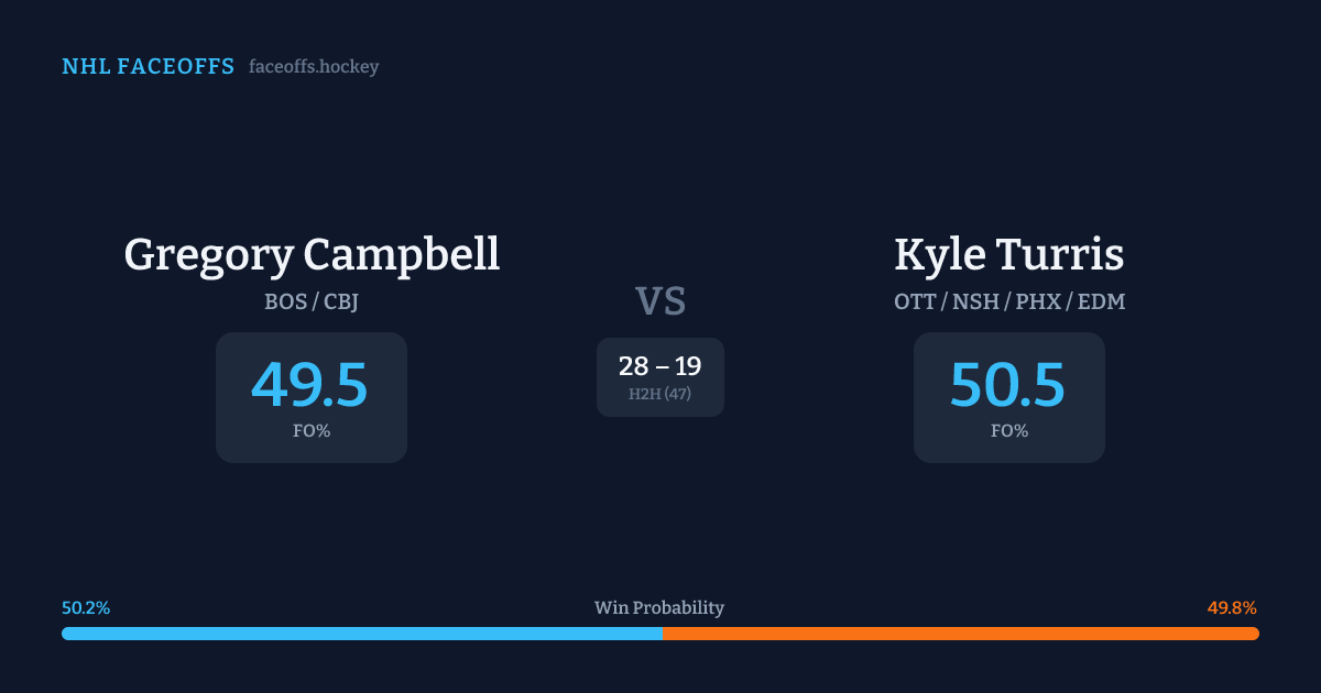 Gregory Campbell vs Kyle Turris — Faceoff Head-to-Head