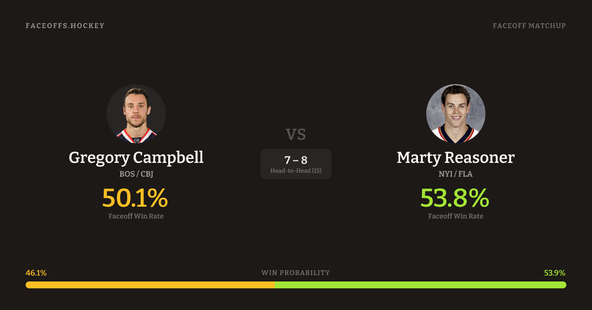 Gregory Campbell vs Marty Reasoner — Faceoff Head-to-Head