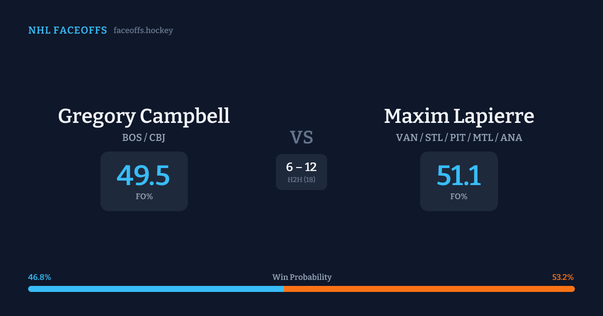 Gregory Campbell vs Maxim Lapierre — Faceoff Head-to-Head