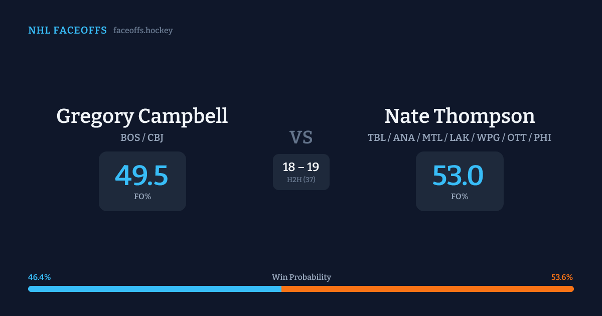 Gregory Campbell vs Nate Thompson — Faceoff Head-to-Head