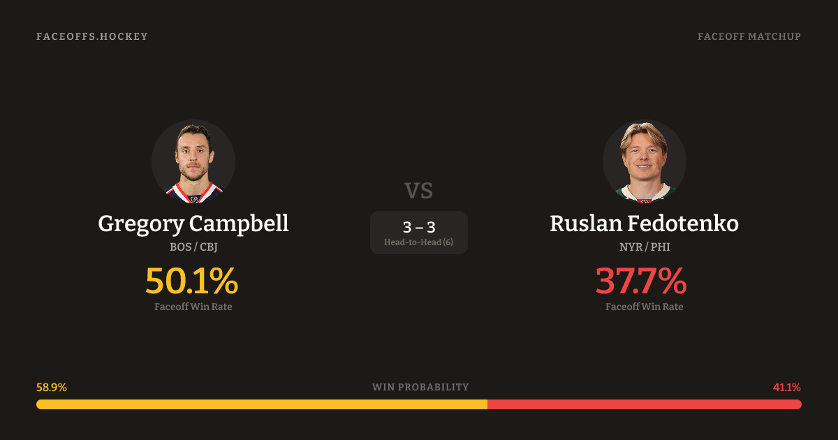 Gregory Campbell vs Ruslan Fedotenko — Faceoff Head-to-Head