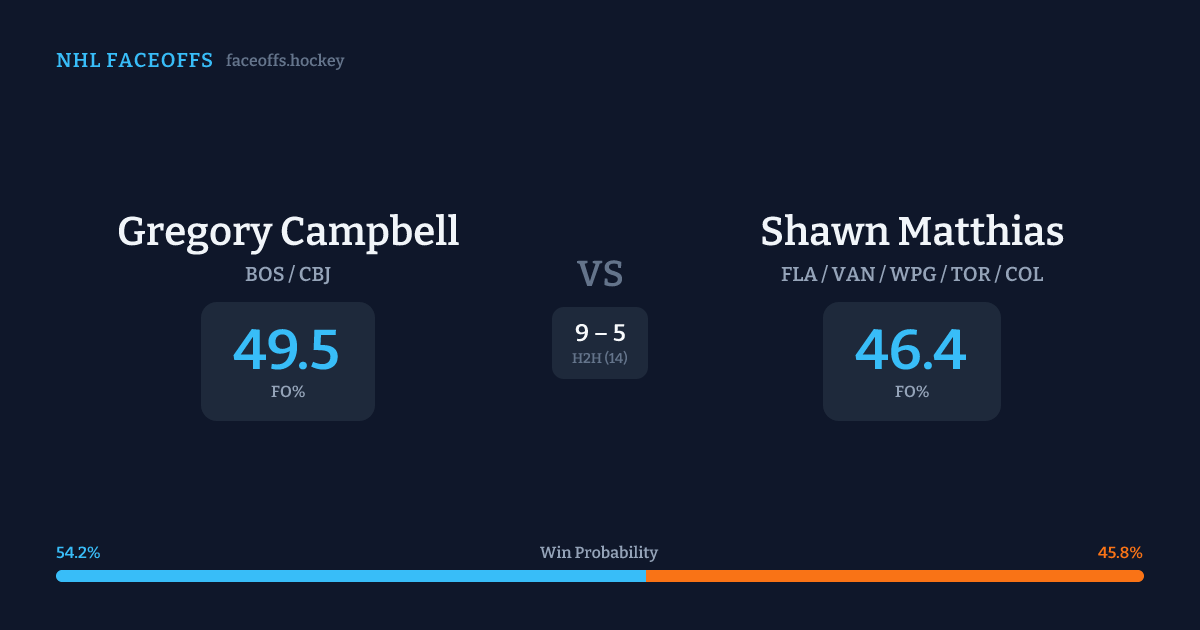 Gregory Campbell vs Shawn Matthias — Faceoff Head-to-Head