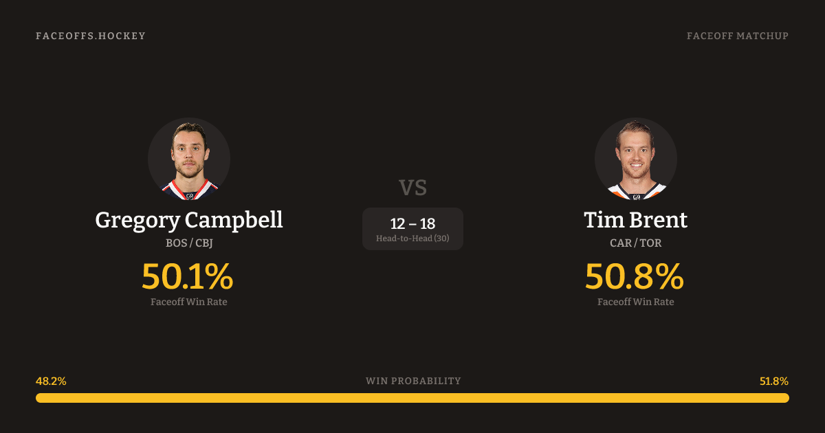 Gregory Campbell vs Tim Brent — Faceoff Head-to-Head
