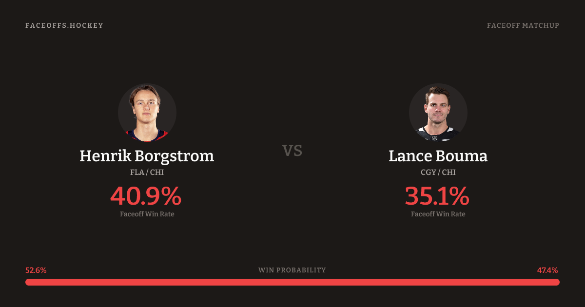 Henrik Borgstrom vs Lance Bouma — Faceoff Head-to-Head