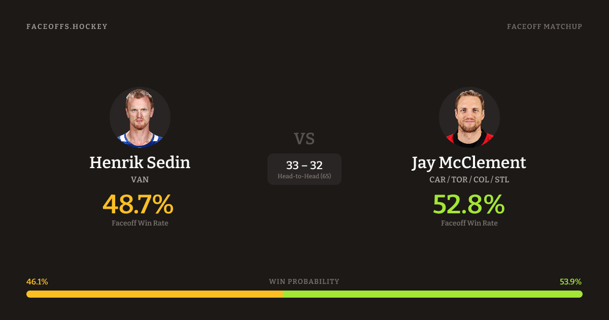 Henrik Sedin vs Jay McClement — Faceoff Head-to-Head