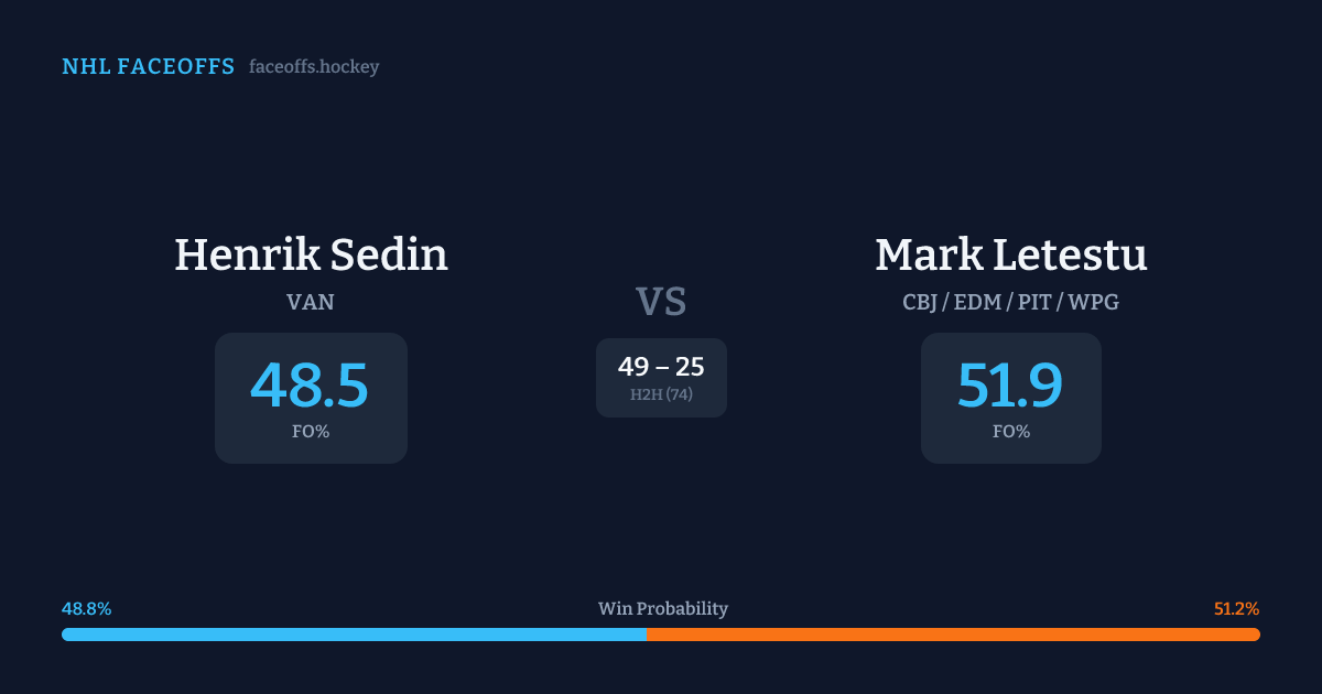 Henrik Sedin vs Mark Letestu — Faceoff Head-to-Head