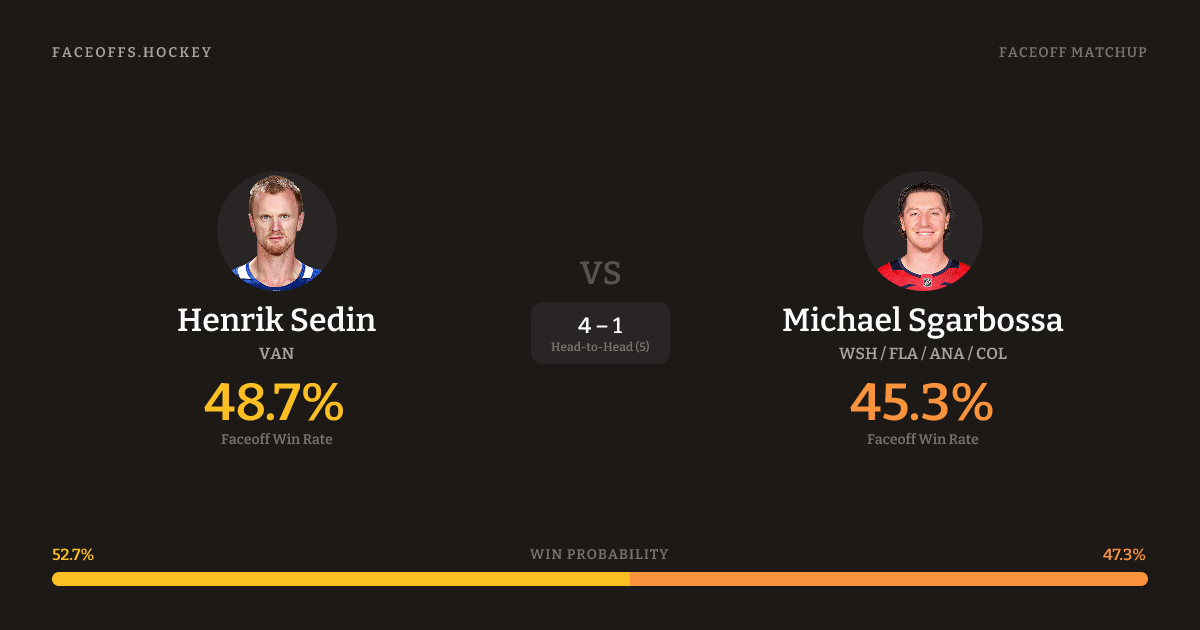 Henrik Sedin vs Michael Sgarbossa — Faceoff Head-to-Head