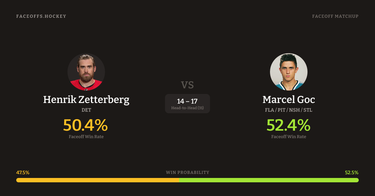 Henrik Zetterberg vs Marcel Goc — Faceoff Head-to-Head