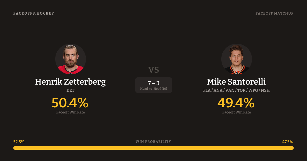 Henrik Zetterberg vs Mike Santorelli — Faceoff Head-to-Head