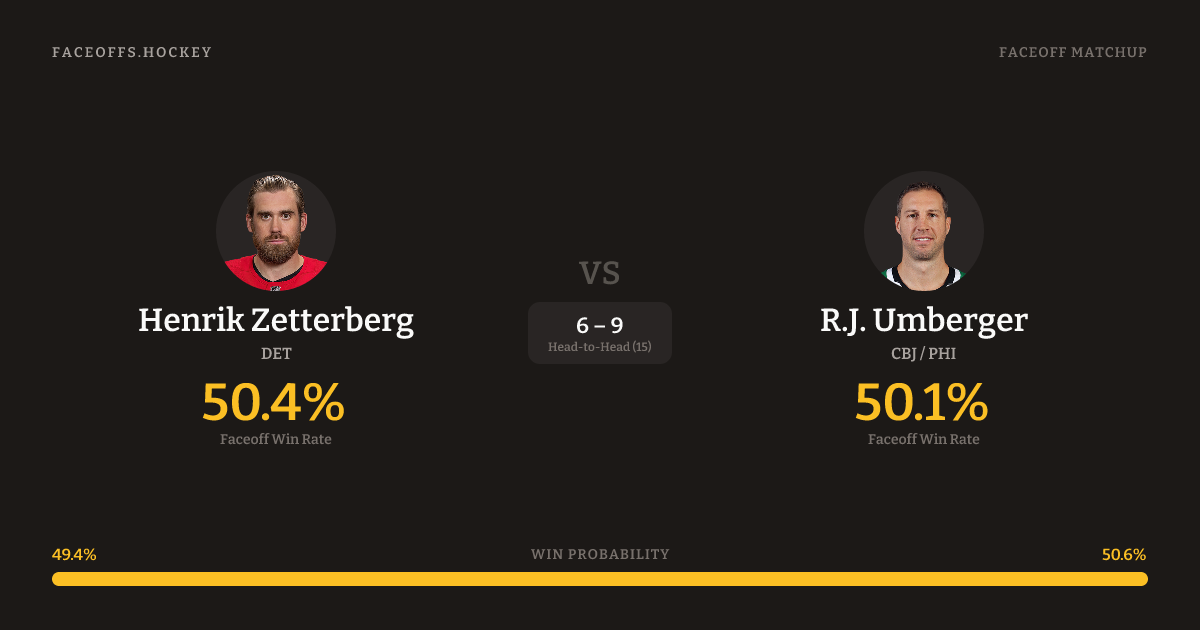 Henrik Zetterberg vs R.J. Umberger — Faceoff Head-to-Head