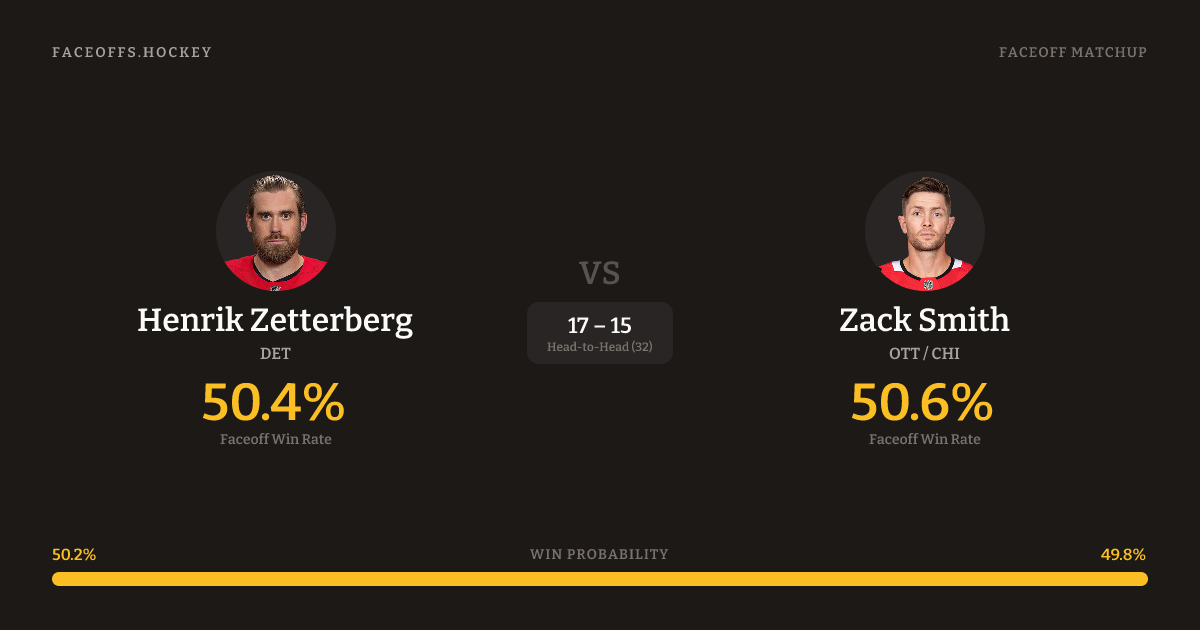 Henrik Zetterberg vs Zack Smith — Faceoff Head-to-Head