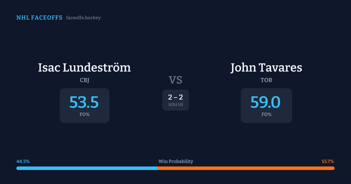 Isac Lundeström vs John Tavares — Faceoff Head-to-Head