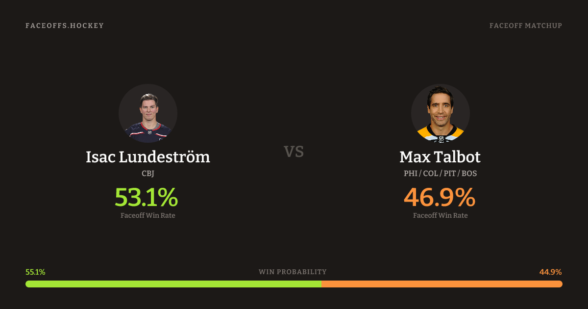 Isac Lundeström vs Max Talbot — Faceoff Head-to-Head