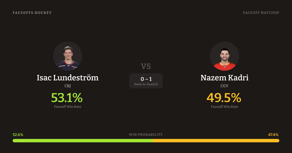 These two are closely matched in overall FO% (47.5% vs 47.5%). Look for Lundeström on neutral-zone draws (100% H2H, 3 meetings).