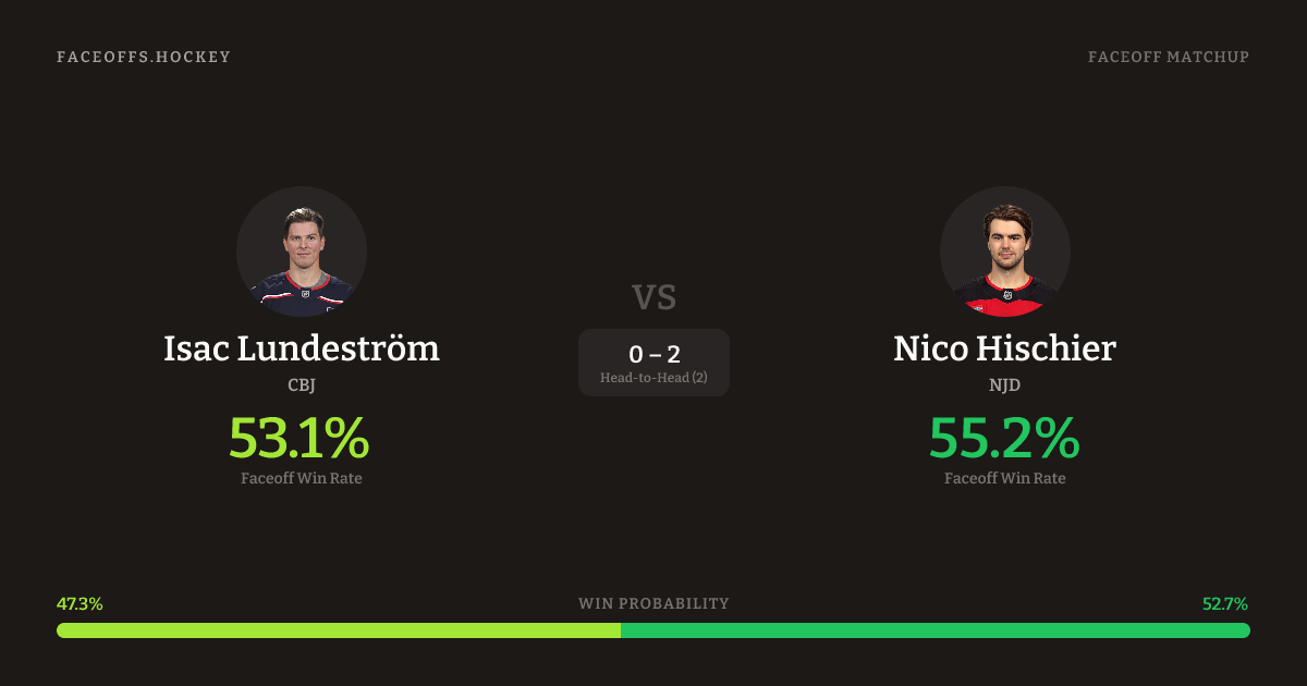 Isac Lundeström vs Nico Hischier — Faceoff Head-to-Head