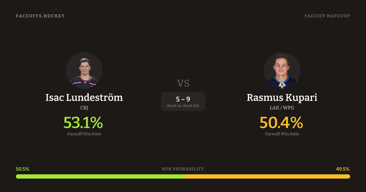 Isac Lundeström vs Rasmus Kupari — Faceoff Head-to-Head