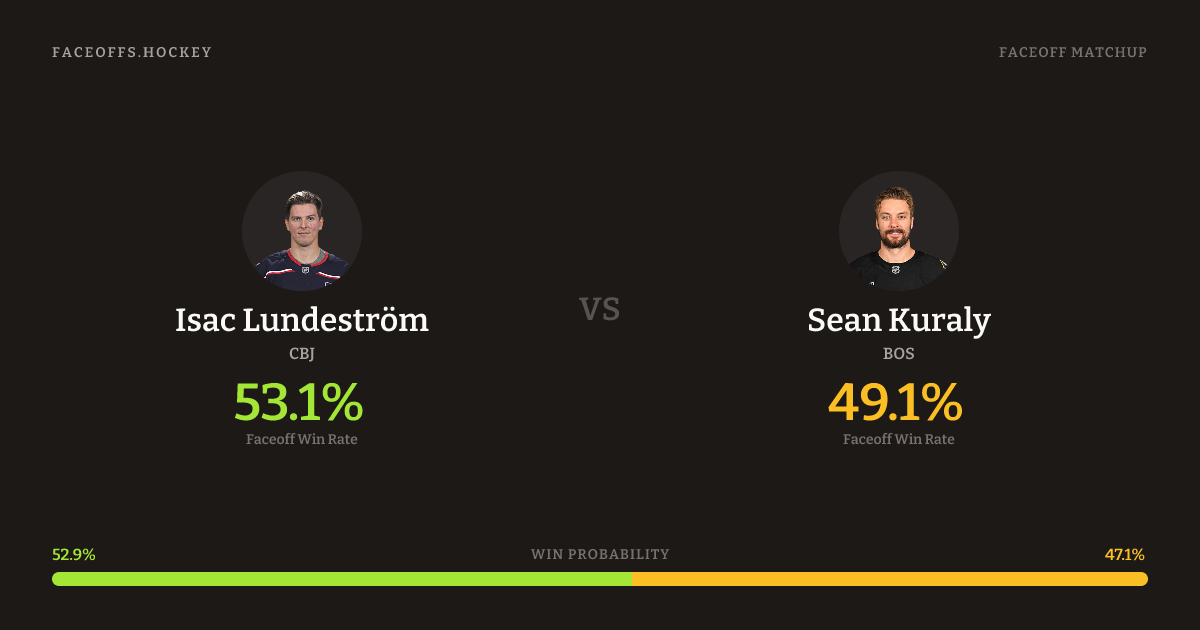 Isac Lundeström vs Sean Kuraly — Faceoff Head-to-Head