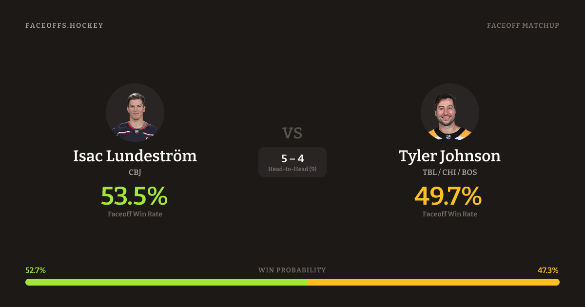 Isac Lundeström vs Tyler Johnson — Faceoff Head-to-Head