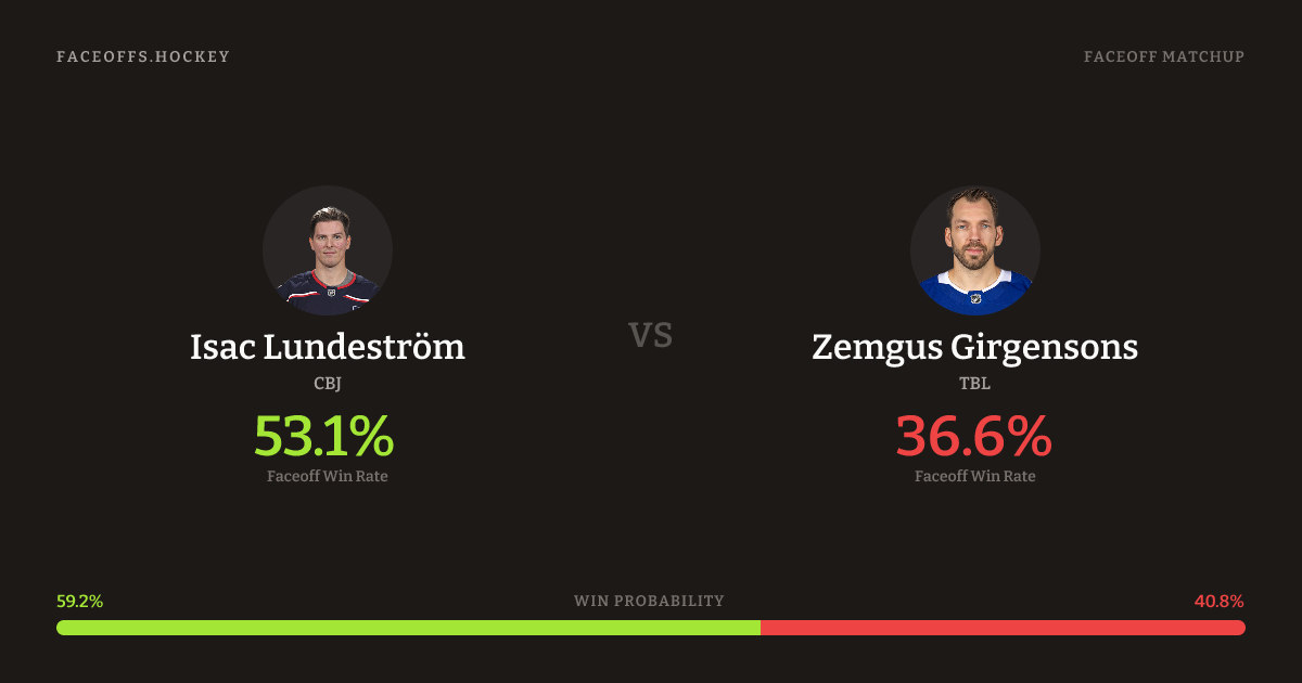 Isac Lundeström vs Zemgus Girgensons — Faceoff Head-to-Head