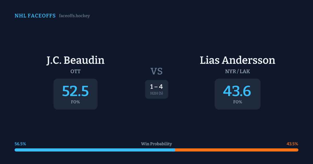 J.C. Beaudin vs Lias Andersson — Faceoff Head-to-Head