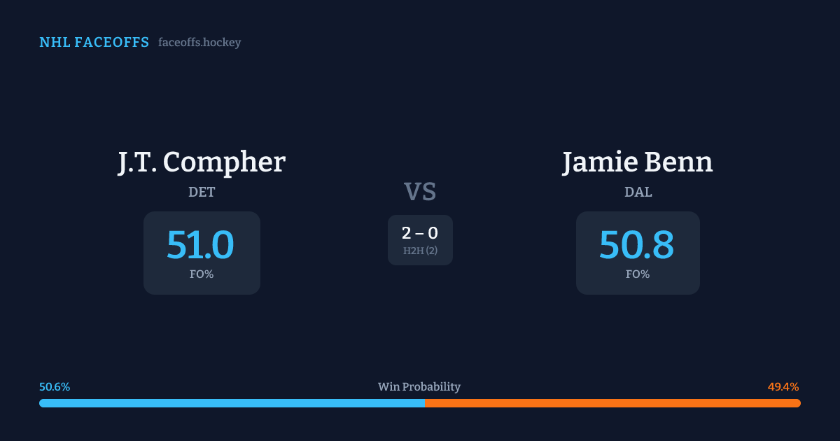 J.T. Compher vs Jamie Benn — Faceoff Head-to-Head