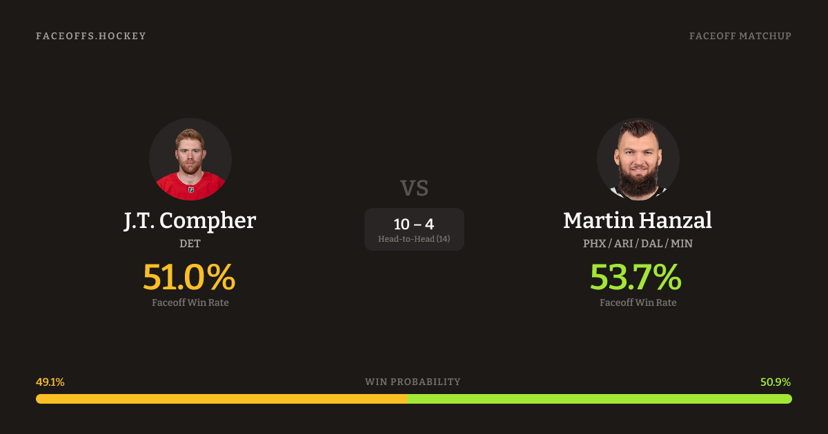 J.T. Compher vs Martin Hanzal — Faceoff Head-to-Head