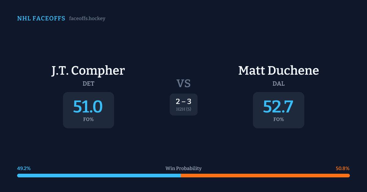 J.T. Compher vs Matt Duchene — Faceoff Head-to-Head