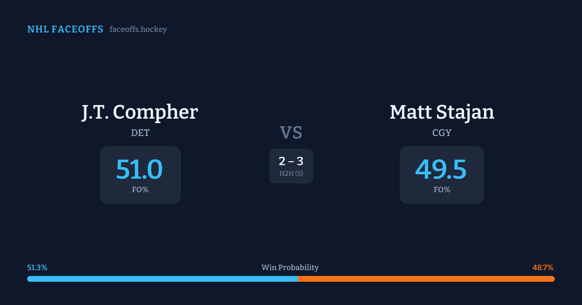 J.T. Compher vs Matt Stajan — Faceoff Head-to-Head