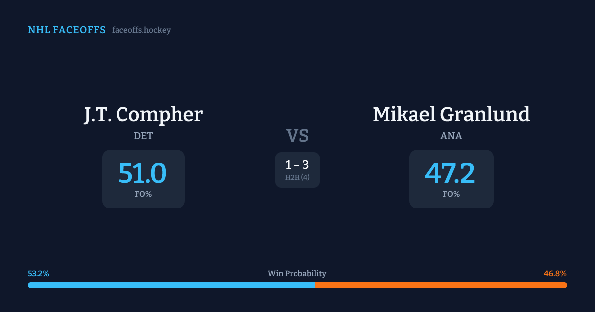 J.T. Compher vs Mikael Granlund — Faceoff Head-to-Head