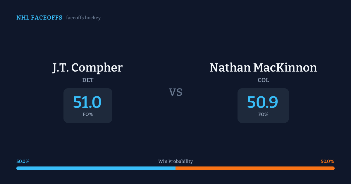 J.T. Compher vs Nathan MacKinnon — Faceoff Head-to-Head