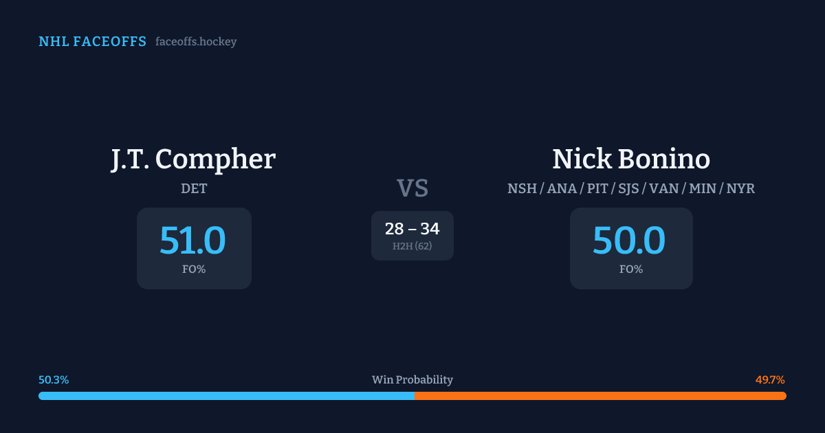 J.T. Compher vs Nick Bonino — Faceoff Head-to-Head