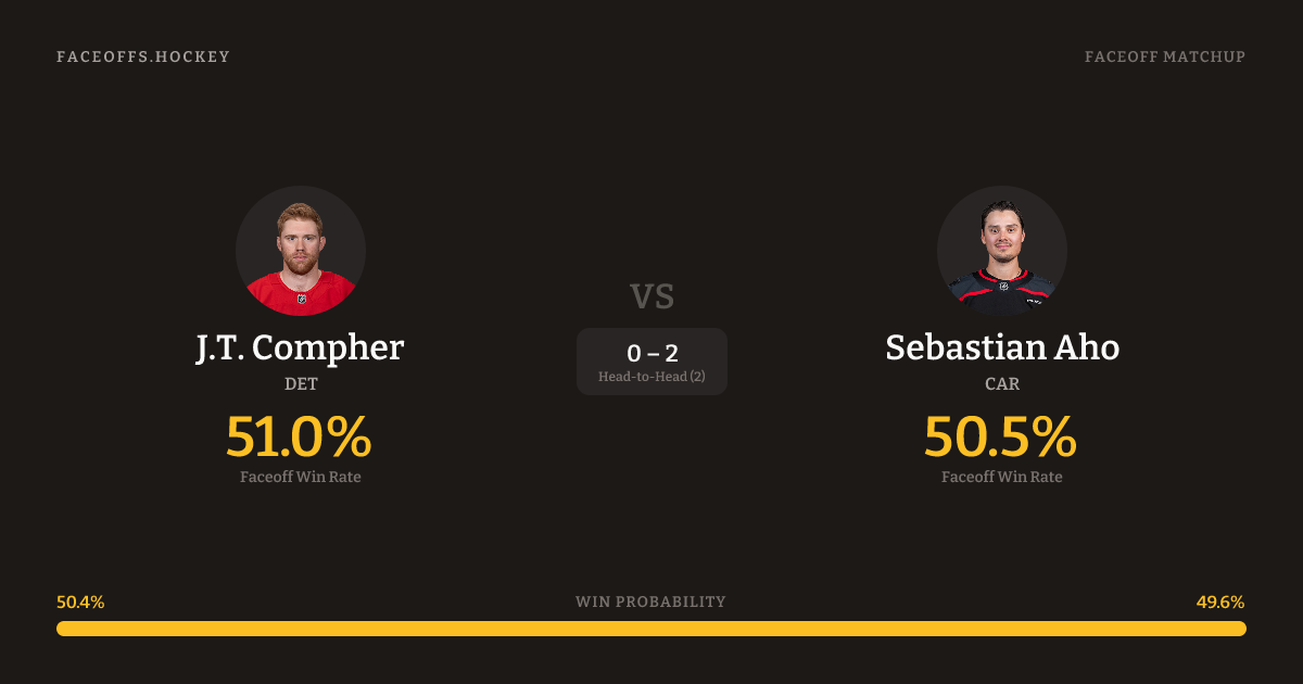 J.T. Compher vs Sebastian Aho — Faceoff Head-to-Head