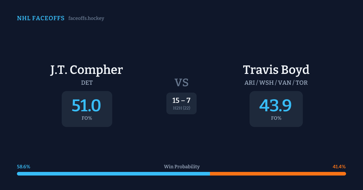 J.T. Compher vs Travis Boyd — Faceoff Head-to-Head