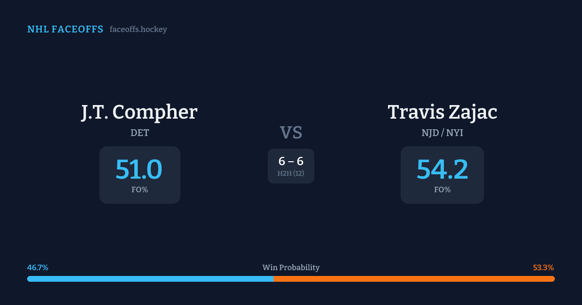 J.T. Compher vs Travis Zajac — Faceoff Head-to-Head