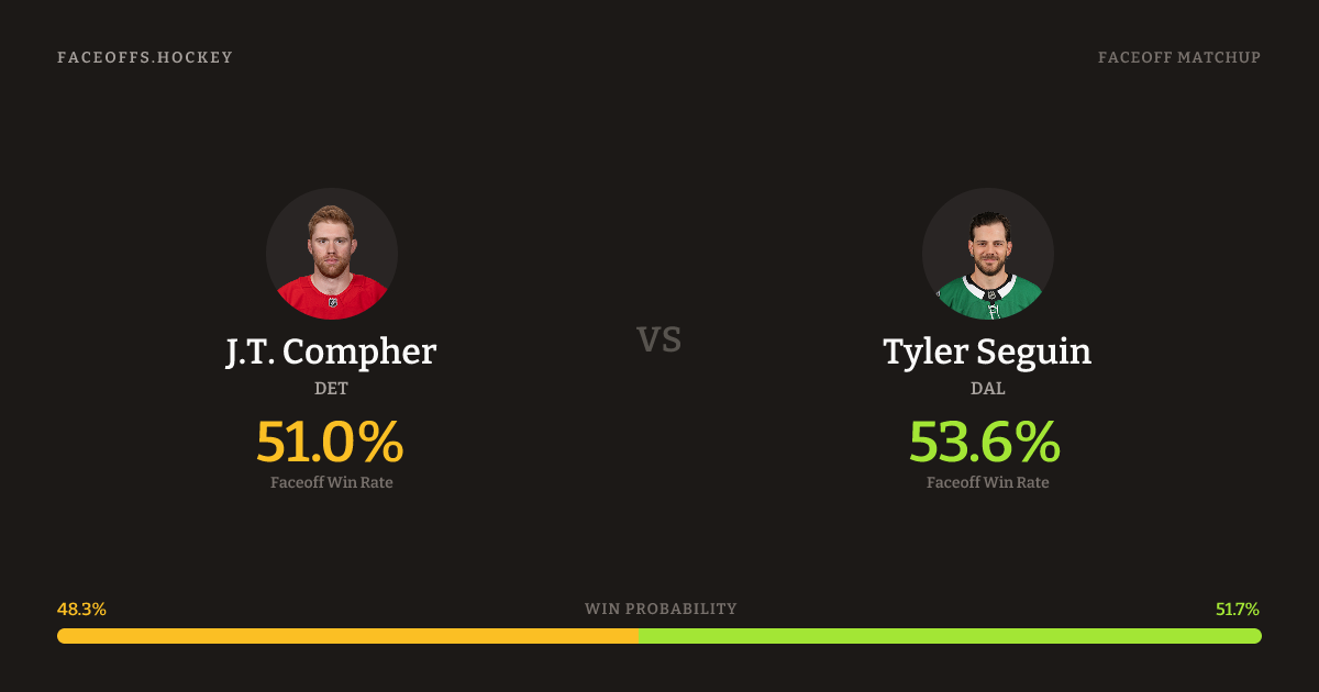 J.T. Compher vs Tyler Seguin — Faceoff Head-to-Head