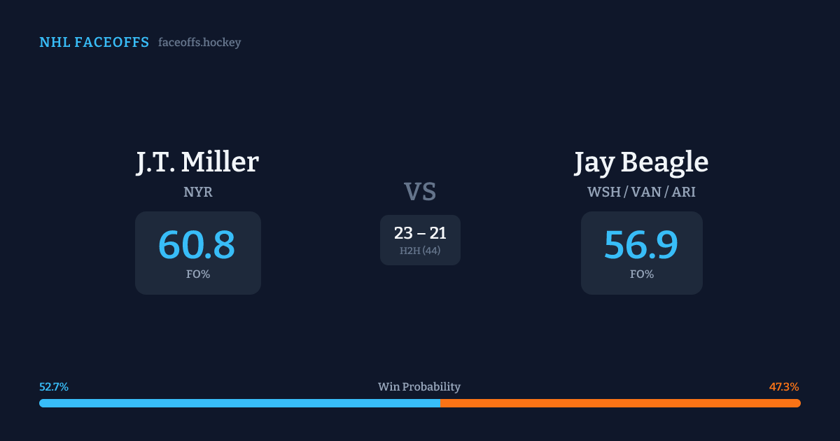 J.T. Miller vs Jay Beagle — Faceoff Head-to-Head
