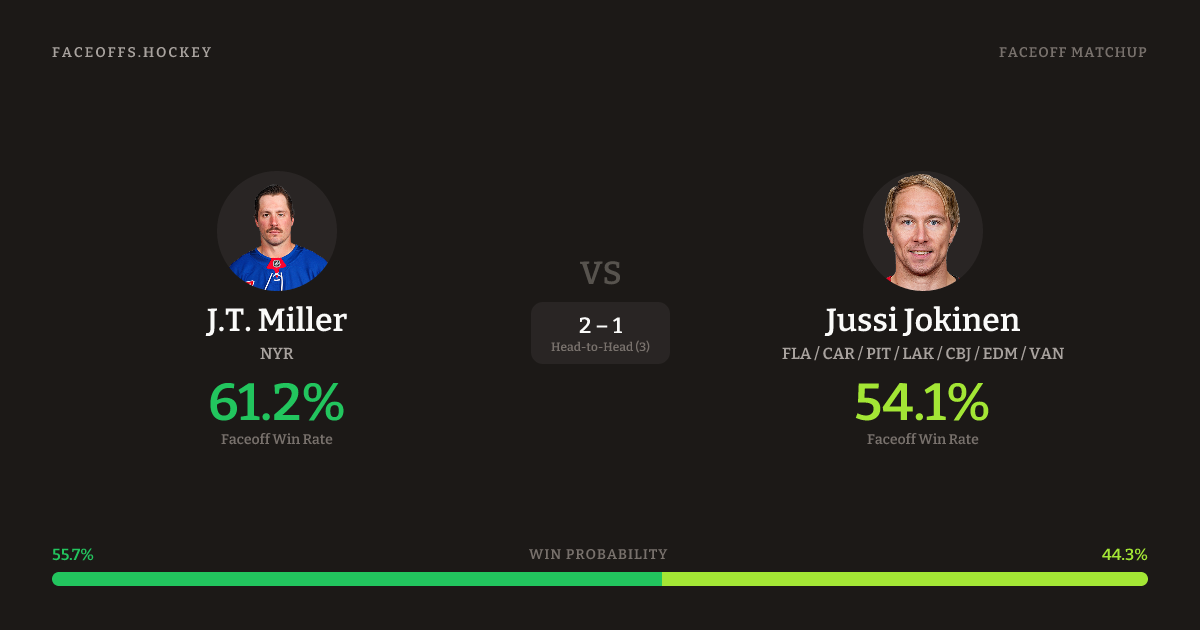 J.T. Miller vs Jussi Jokinen — Faceoff Head-to-Head
