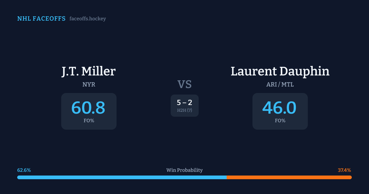 J.T. Miller vs Laurent Dauphin — Faceoff Head-to-Head