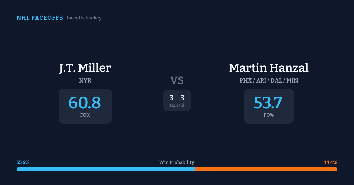 Martin Hanzal holds a +12.4% FO% edge overall. Miller wins 43.2% vs left-shot opponents — Hanzal shoots left.