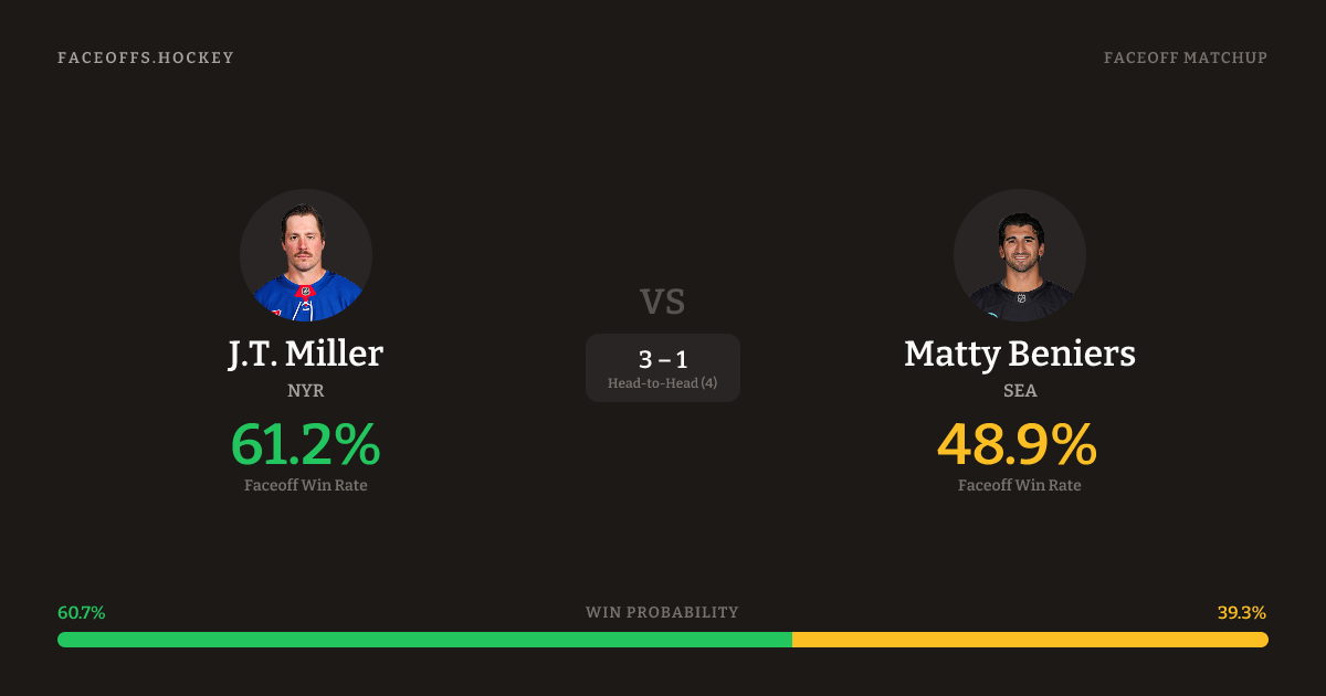 J.T. Miller vs Matty Beniers — Faceoff Head-to-Head