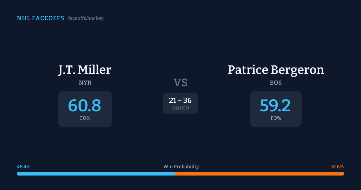 J.T. Miller vs Patrice Bergeron — Faceoff Head-to-Head