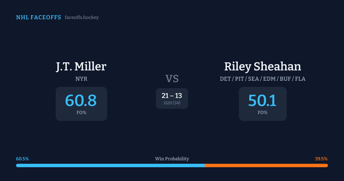 J.T. Miller vs Riley Sheahan — Faceoff Head-to-Head