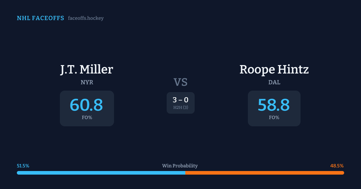 J.T. Miller vs Roope Hintz — Faceoff Head-to-Head