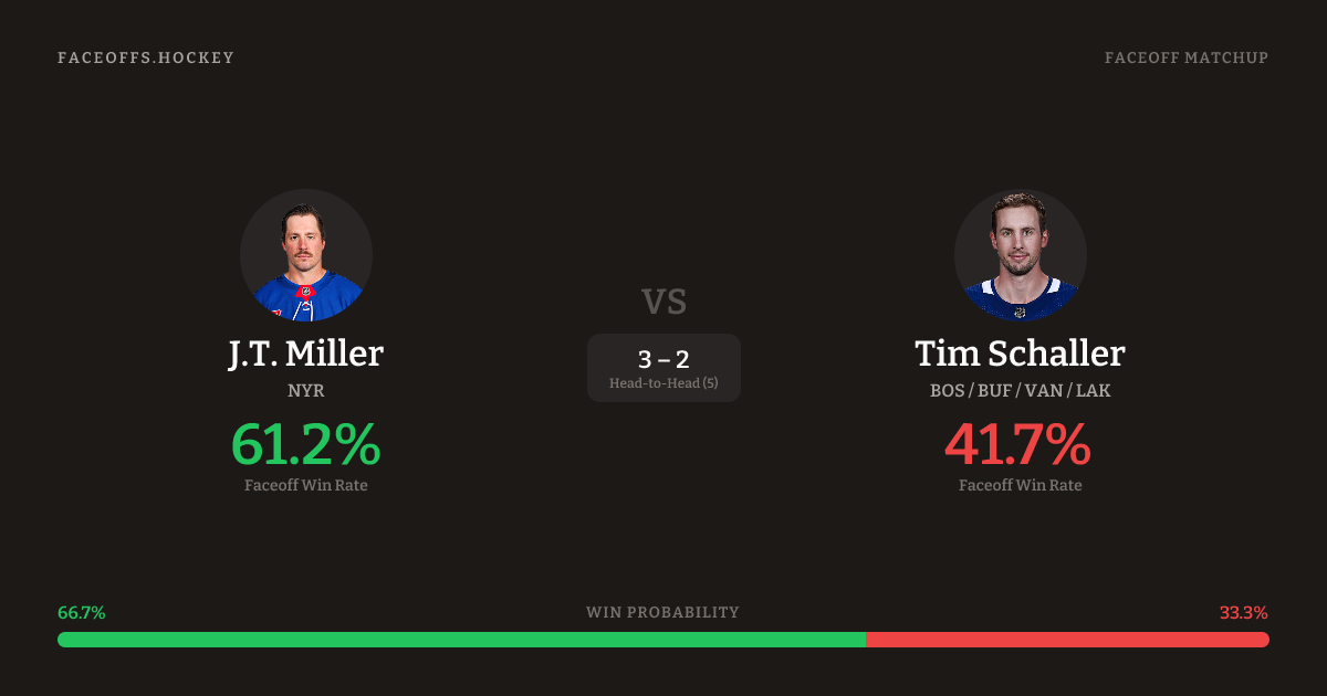 J.T. Miller vs Tim Schaller — Faceoff Head-to-Head