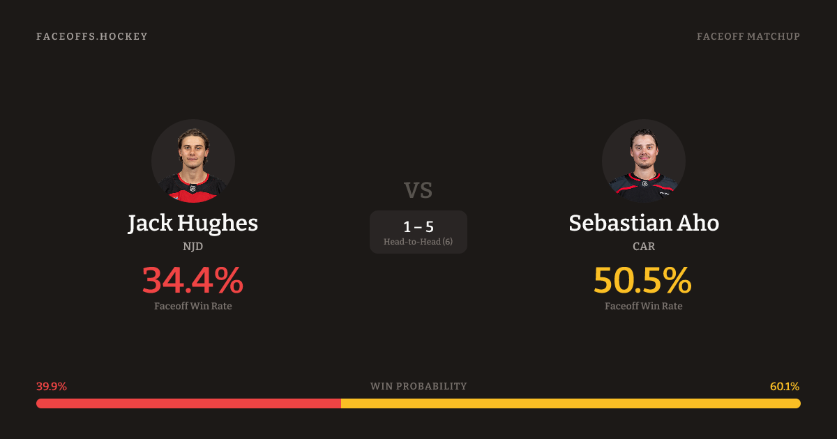 Jack Hughes vs Sebastian Aho — Faceoff Head-to-Head