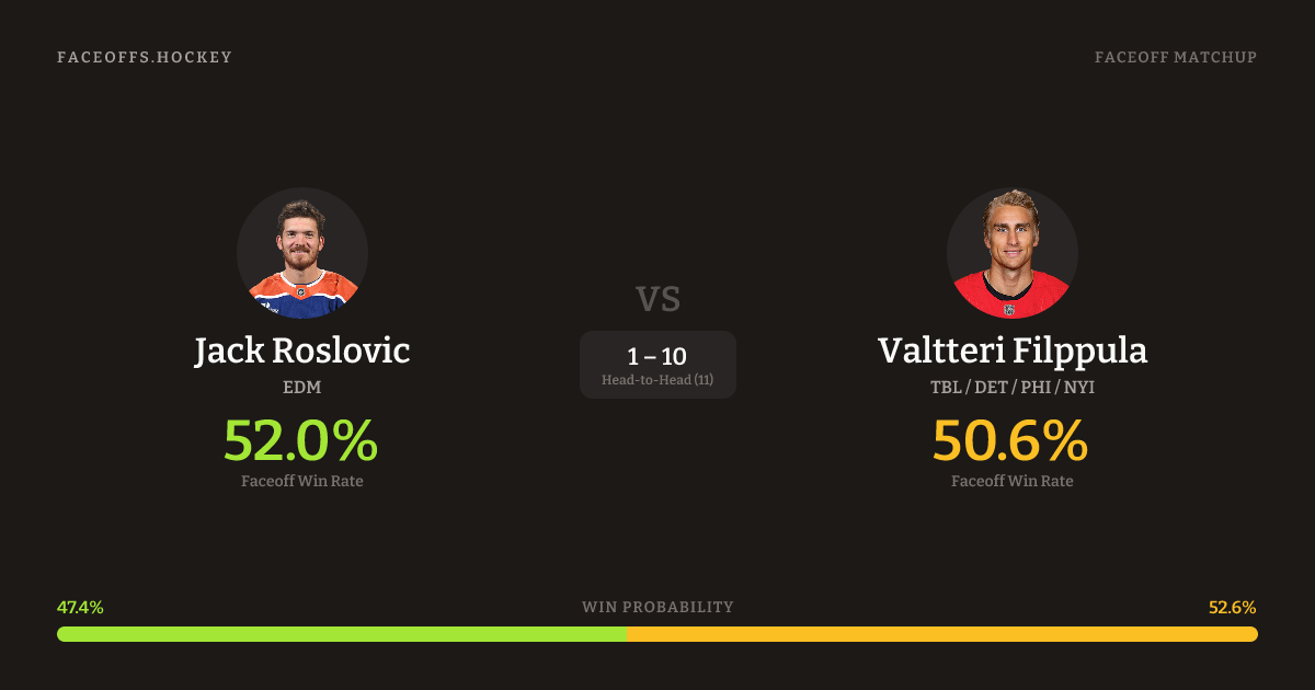 Jack Roslovic vs Valtteri Filppula — Faceoff Head-to-Head