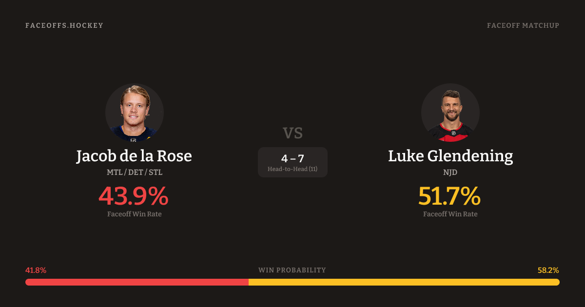 Jacob de la Rose vs Luke Glendening — Faceoff Head-to-Head