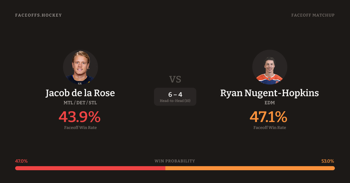 Jacob de la Rose vs Ryan Nugent-Hopkins — Faceoff Head-to-Head