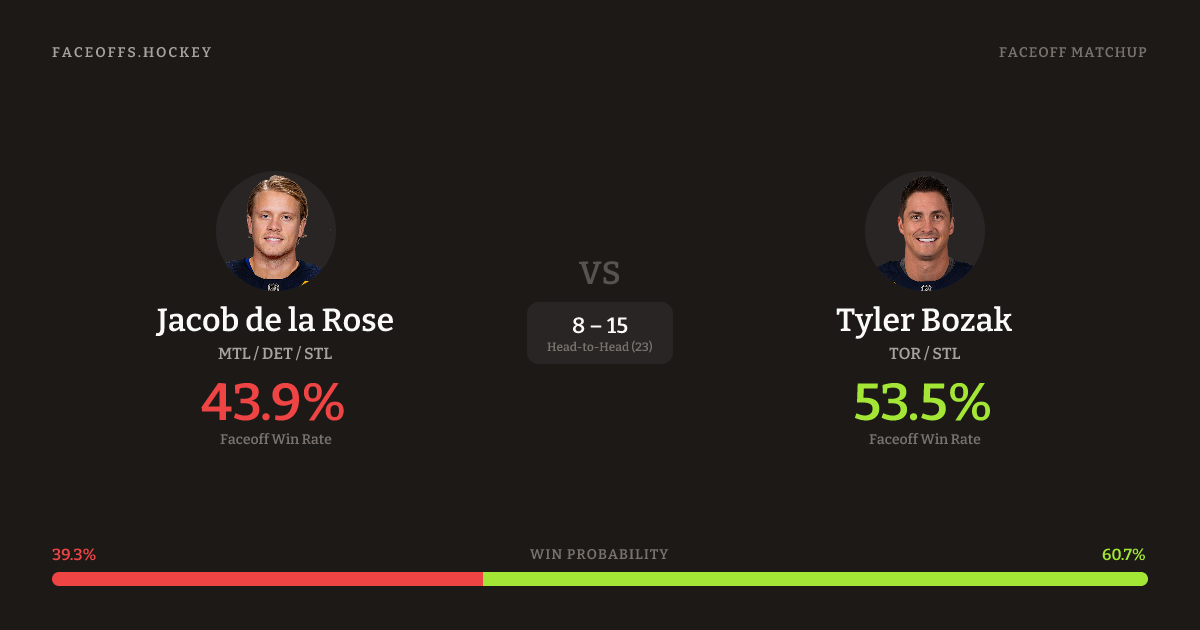 Jacob de la Rose vs Tyler Bozak — Faceoff Head-to-Head